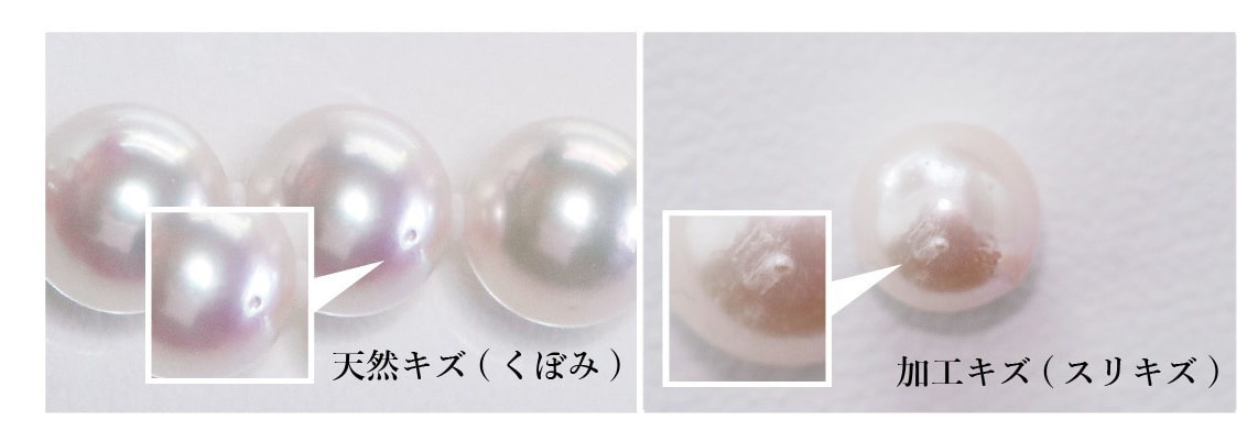 真珠には天然キズがある前提で評価され、キズがどれだけ少ないかでキズの評価が決まります。
